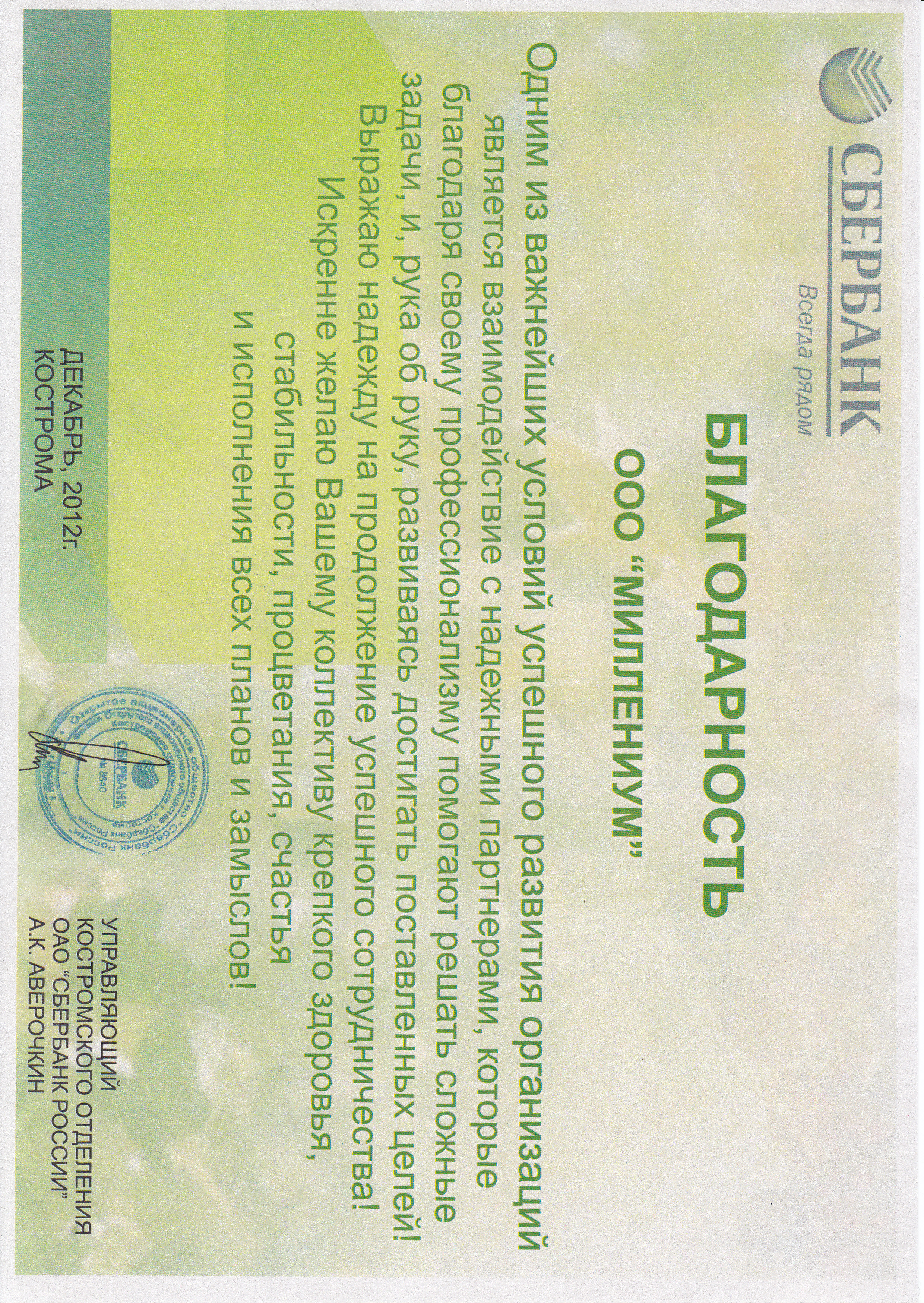 Ювелирный завод "Александра" искренне благодарит коллектив "Миллениум" за профессионализм и порядочность, проявленные во время совместной работы.
