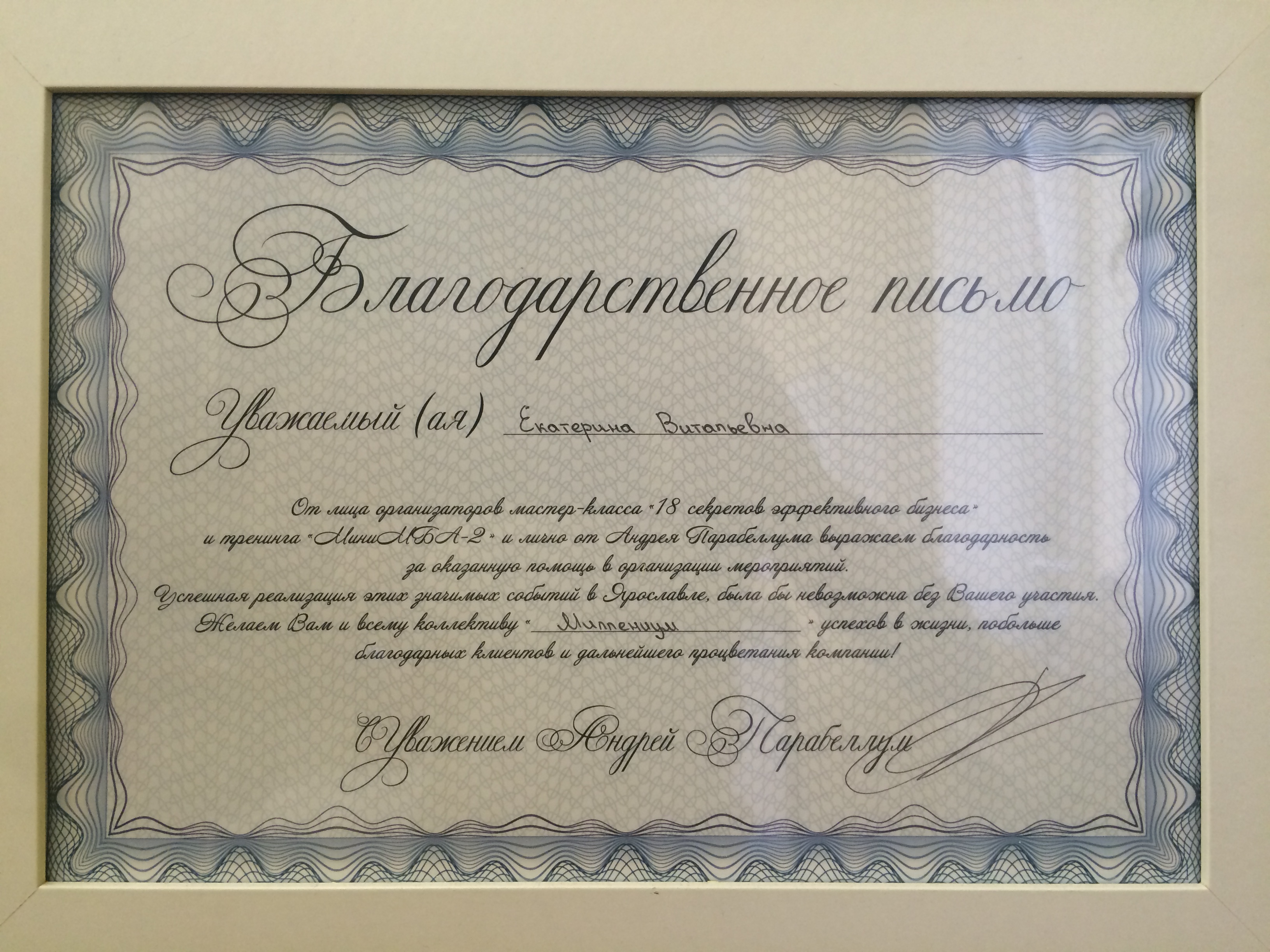 Выражаем благодарность за оказание помощи в реализации мероприятий. Успешная реализация этих значимых событий в Ярославле была бы невозможна без Вашего участия.